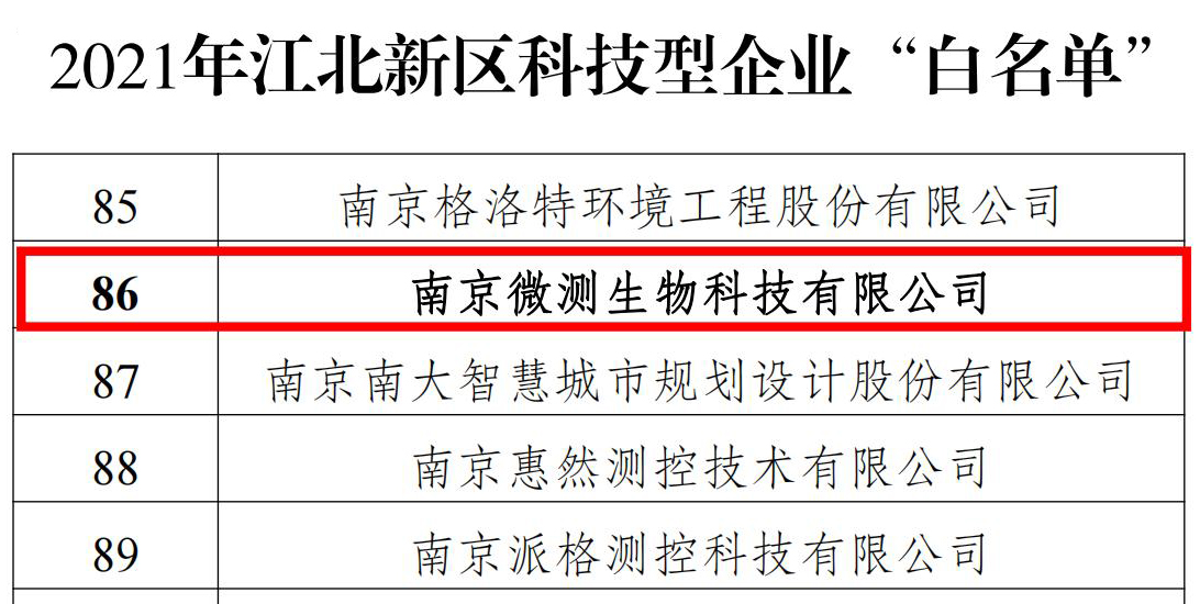南京微測(cè)入選2021年江北新區(qū)科技企業(yè)“白名單”